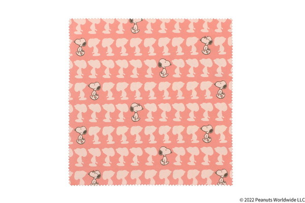 両面にスヌーピーが描かれたソフトケースと、メガネ拭きのセット。メガネをかけたスヌーピーはZoffオリジナルデザインです。