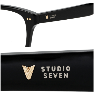 「STUDIO SEVEN」で使用されているモチーフ「フラワーロゴ」をテンプルの外側に配置。