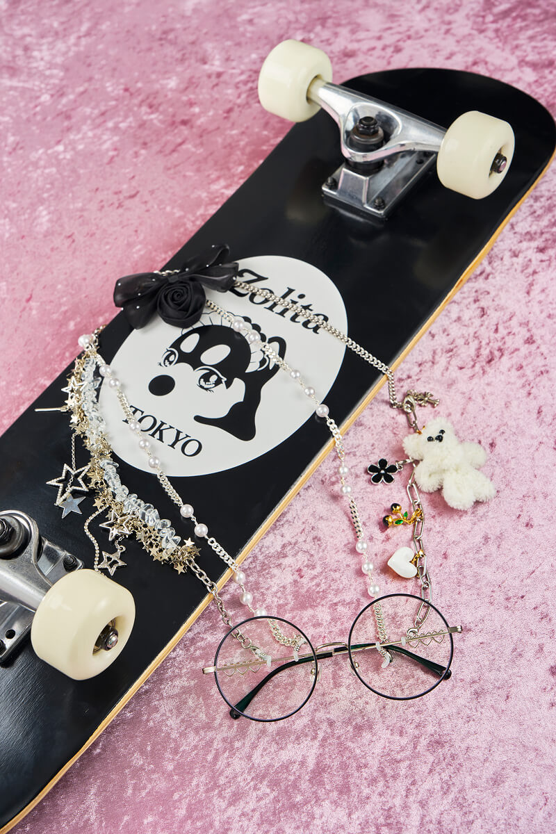 大きなリボンに小さなクマの人形、花形がポイントのグラスコードなど、ロリータだけでなく、原宿カルチャー好きにもおすすめ!