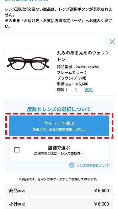 ※カート内(買い物かご内)でレンズをお選びいただけます。