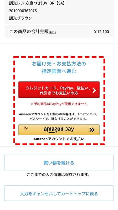 その後は案内に従って、お届け先、お支払い方法を選択し、ご注文を完了してください。